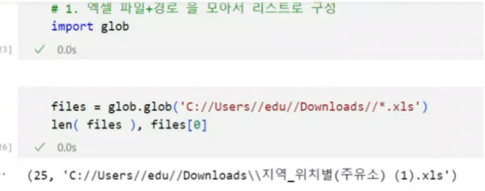 다운된 엑셀 파일 & 파일 경로를 모아 리스트 구성