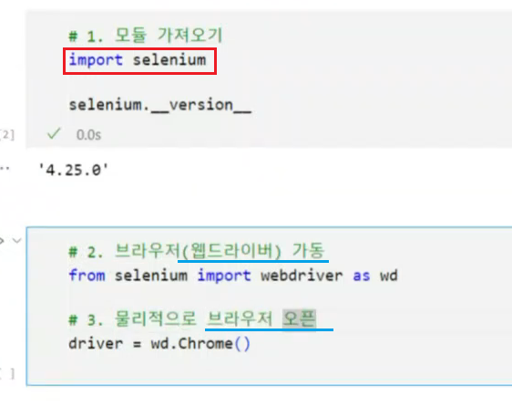 3. 설치 확인 및 모듈가져오기 ➕ 브라우저 가동/오픈
