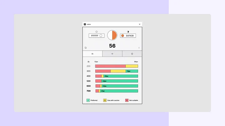 3. 조합에 대한 대비율과 WCAG점수를 확인한다.