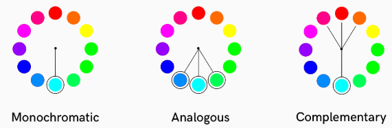 - 단색 ( Monochromatic ) : 중요한 정보, 회색 영역 또한 같은 계열의 색 사용