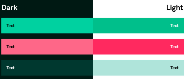 색은 상대적이기에, 다크 모드를 디자인 할 때 본래 색을 사용하지 않고 다른 색을 사용.