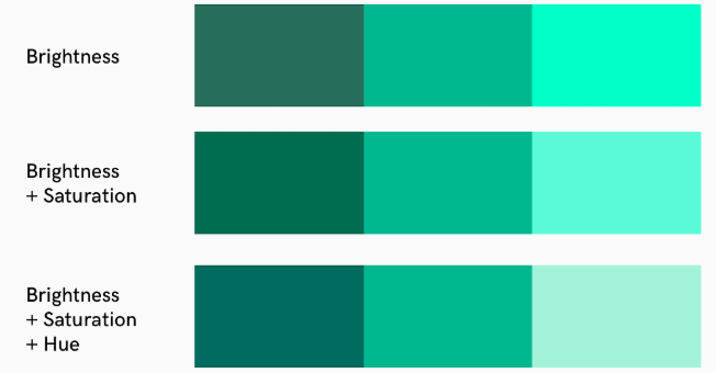 하나의 주색으로 구분이 어려울 경우 밝기와 어둠을 사용한다.