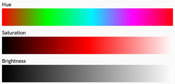 - HSV, HSB ( Hue, Saturation, Value or Brightness ) : 직관적인 색의 속성