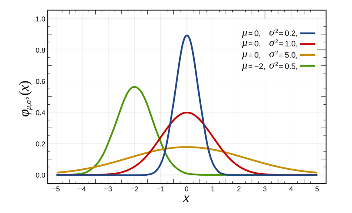 대부분의 데이터가 평균 주변에 몰려 있음.