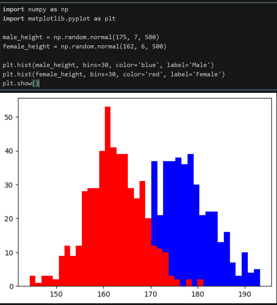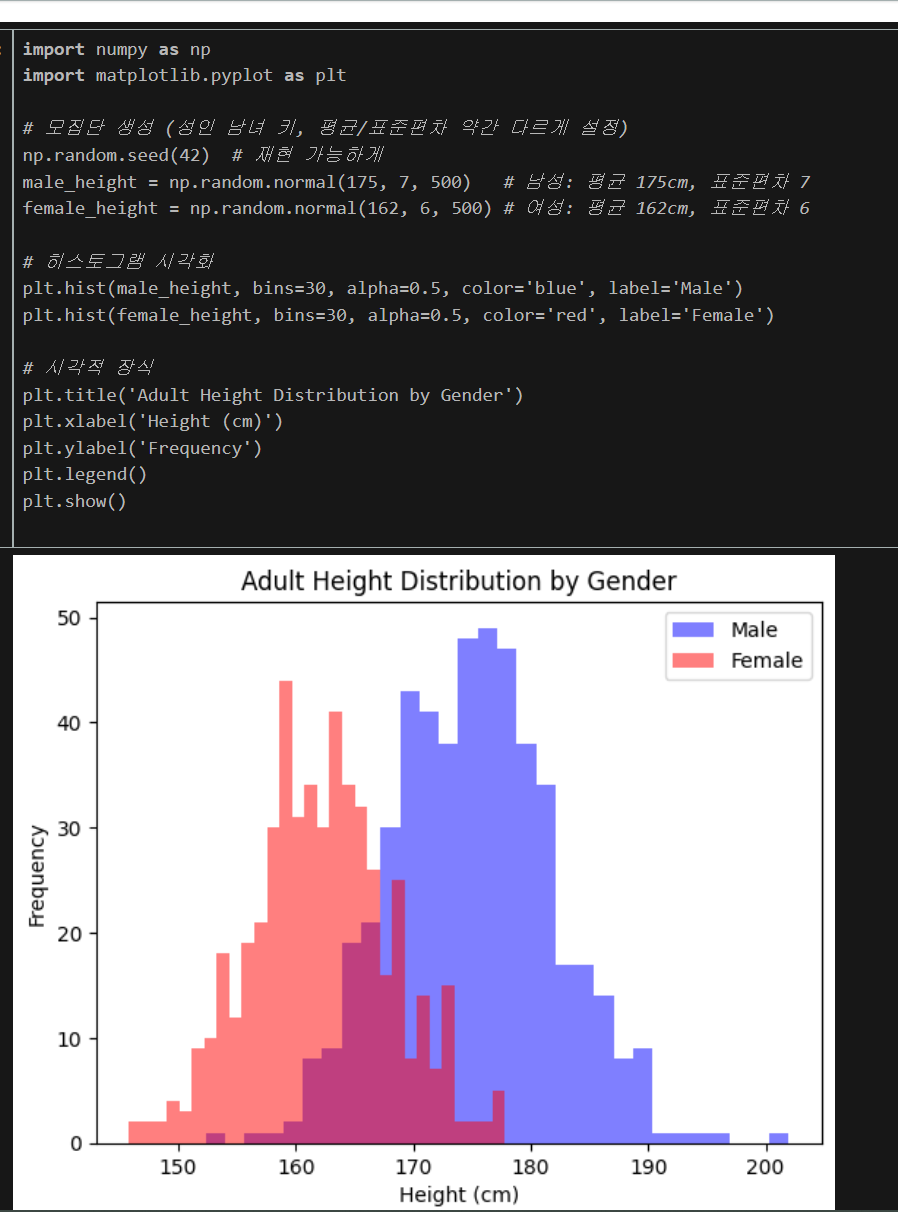성인 남녀의 키 데이터를 각각 정규 분포로 만들고,