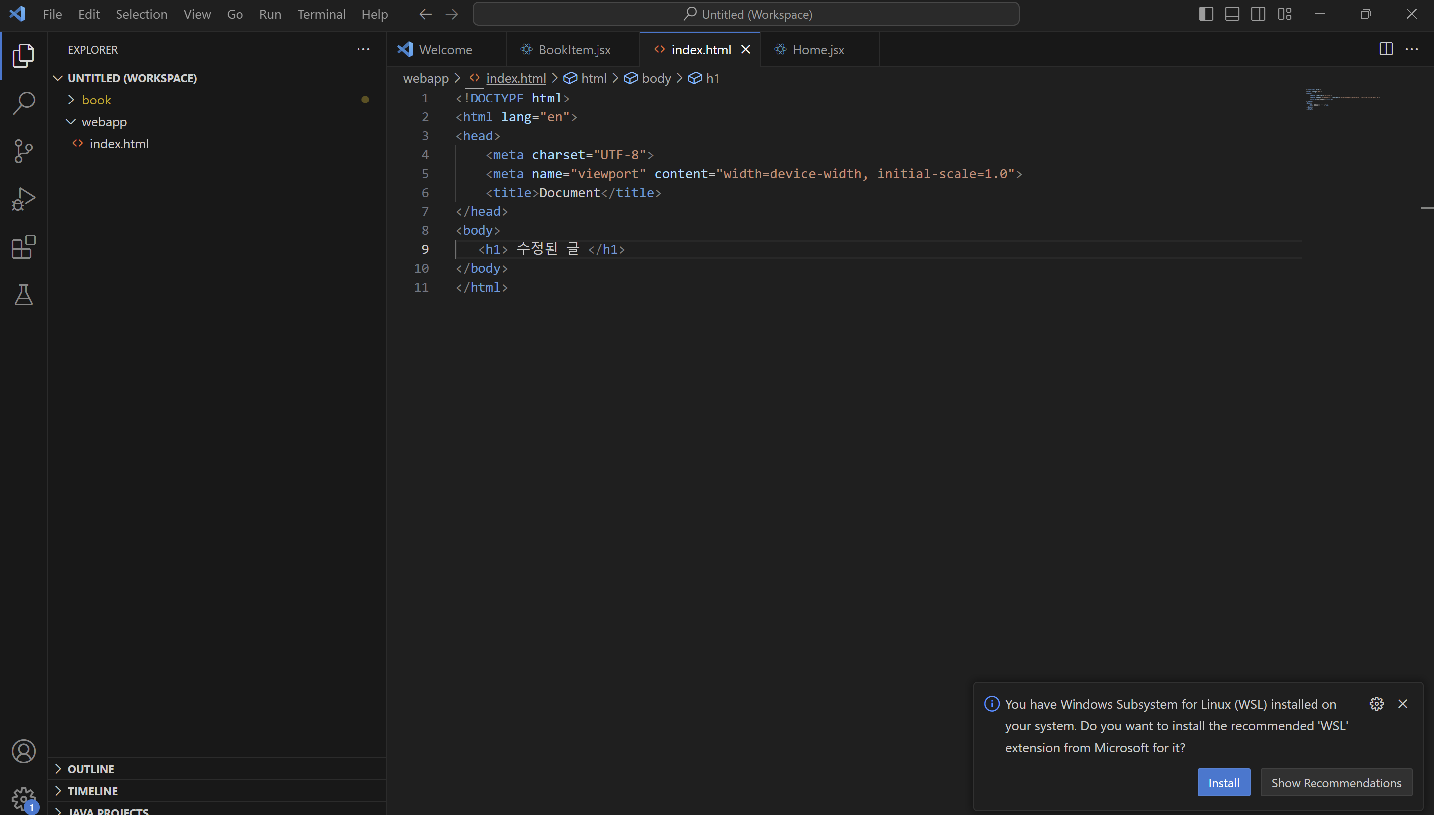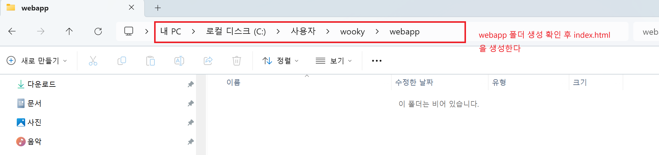 을 webapp 폴더 내에 VS code로 작성
