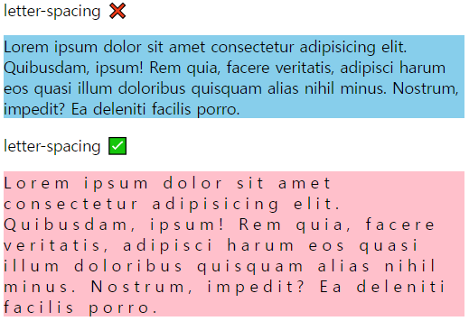 letter-spacing은 자간, 즉 각 글자 사이의 간격을 조정합니다. letter-spacing: 5px;을 추가하면 각 글자 사이 간격이 늘어나는 것을 확인할 수 있습니다.