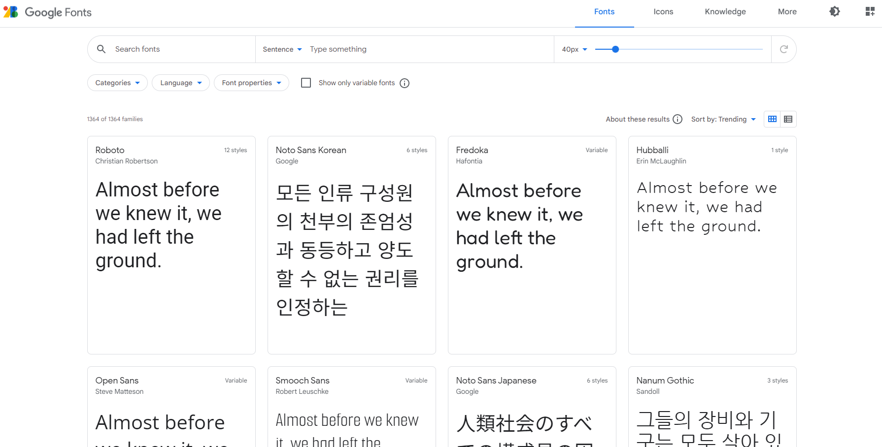 웹 폰트는 링클르 통해 폰트를 불러오는 방식을 뜻합니다. 보통 구글 폰트를에서 원하는 폰트를 찾아서 적용시킵니다.