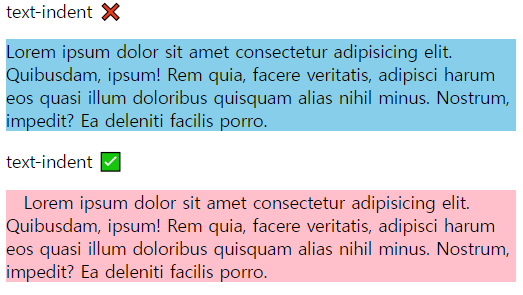 text-indent는 문단의 시작부에 들여쓰기를 지정합니다.