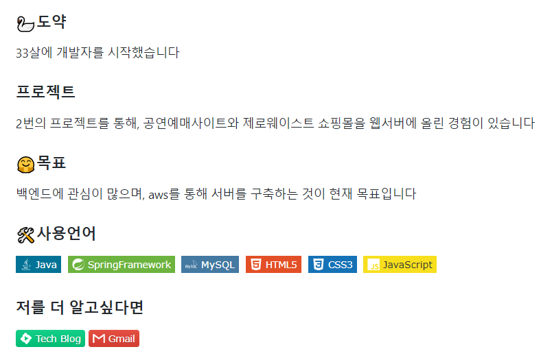 프로젝트 설명에 사용되기도 하고, 나처럼 프로필을 설명하는데도 사용한다.