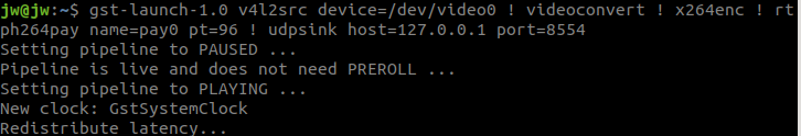 gst-launch-1.0 v4l2src device=/dev/video0 ! videoconvert ! x264enc ! rtph264pay name=pay0 pt=96 ! udpsink host=127.0.0.1 port=8554