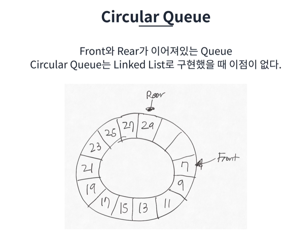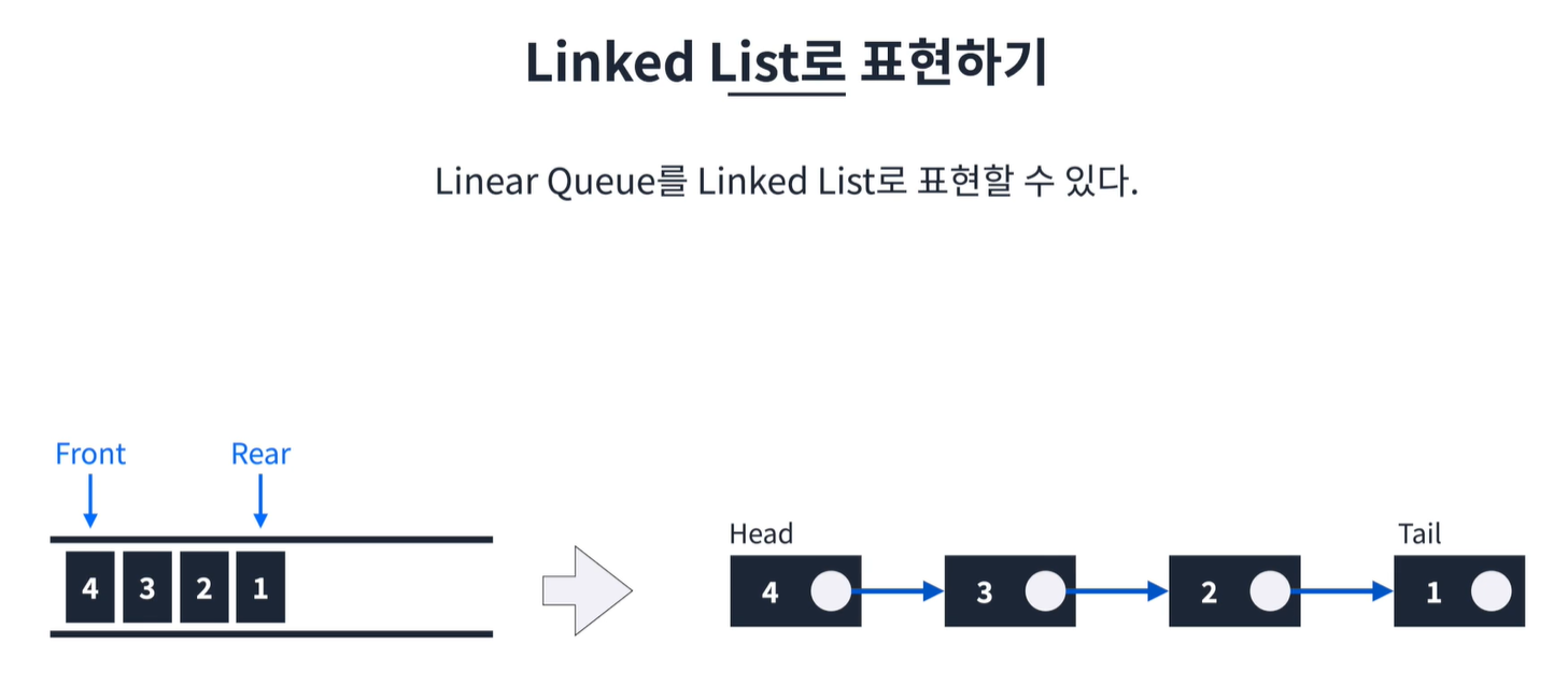 - 연결 리스트: 헤드 = 프론트, 테일 = 리어 역할. 인덱스 고민 없어짐