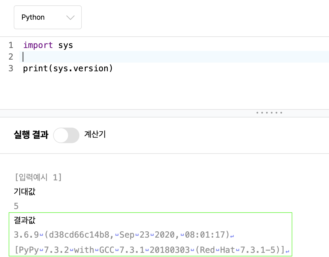 그래서 저는 파이썬으로 알고리즘을 풀다보면 해당 사이트가 지원하는 파이썬 버전이 궁금하더라구요 ㅎㅎ