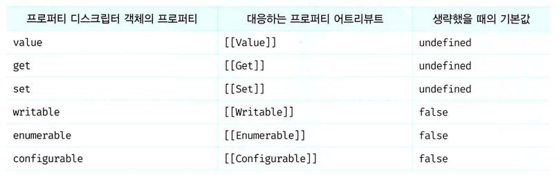프로퍼티 디스크립터 객쳬에서 생략된 어트리뷰트의 기본값