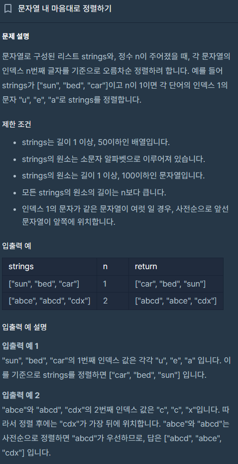 문자열 내 마음대로 정렬하기