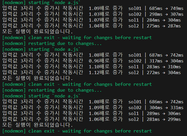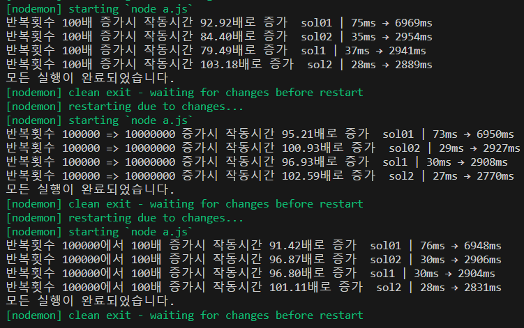 의외의 결과가 나왔다. sol01 > sol2 > sol1 = sol01 로 실행시간이 길것으로 예상했는데 실제로는