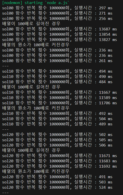 console.log(`배열의 원소가 ${n2}배로 커진경우`);