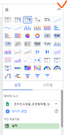 Looker studio에서의 피벗 테이블은 차트 테마에 포함되어있어서, 선택해주면 됨