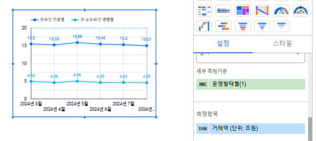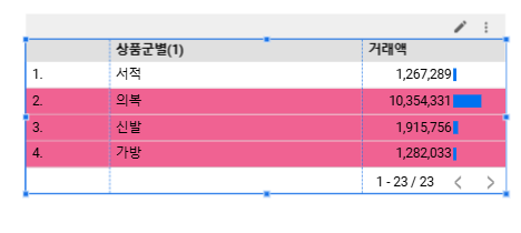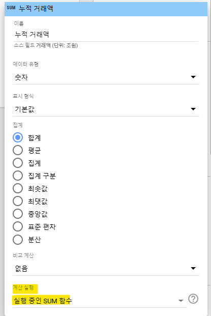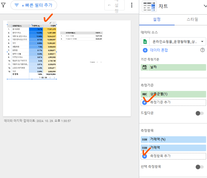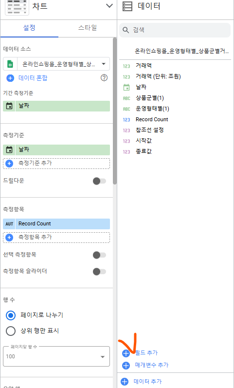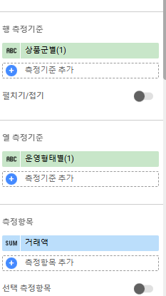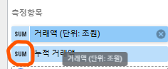 측정 항목에 값(여기선 거래액) 추가한 후, 왼쪽 버튼 클릭