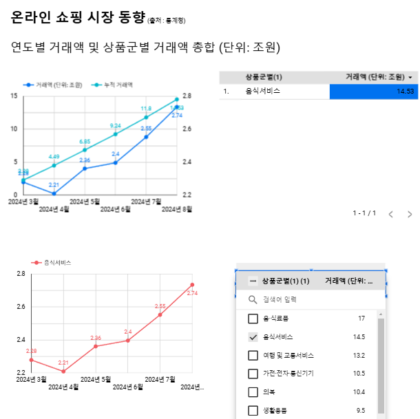컨트롤 추가 > 드롭다운 목록 또는 고정 목록을 추가하면, 아래처럼 같은 페이지 내의 모든 차트에 영향을 주는 필터를 넣을 수 있음
