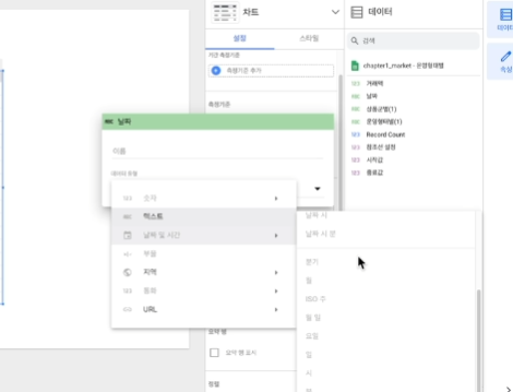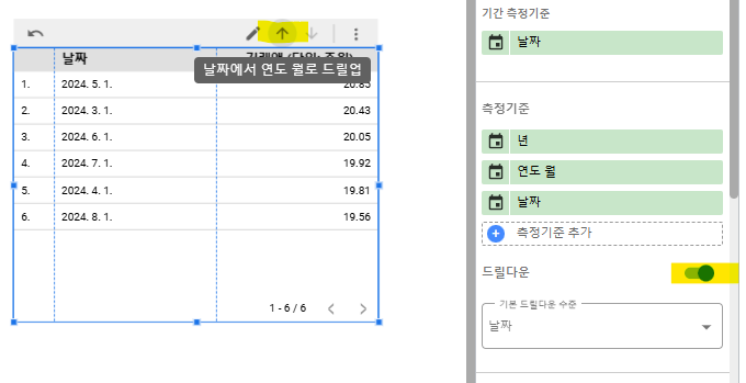 먼저, 날짜 데이터를 드릴다운할 수 있게 설정을 변경함