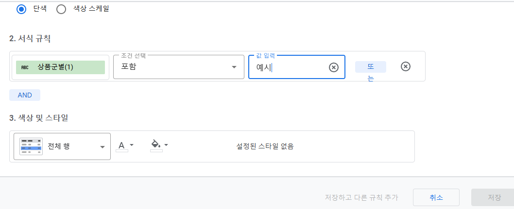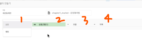 1: 이 필터를 만족하는 행을 보여줄 것인지, 숨길 것인지