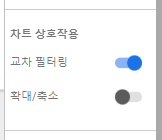 속성 패널 > 설정 탭 최하단의 '교차 필터링'