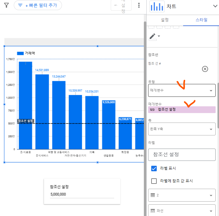 평균선, 중간값선 등 자동으로 계산하여 보여주는 참조선도 있지만, 사용자가 직접 값을 입력해서 참조선을 동적으로 변경하는 경우도 있다고 함
