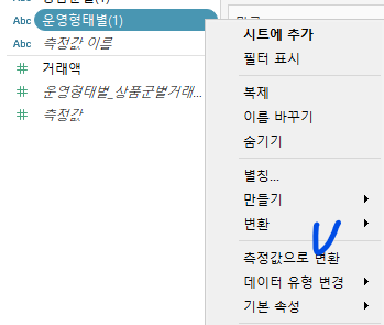1. 원하는 필드에 마우스 오른쪽 클릭 > 측정값으로 변환