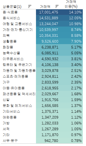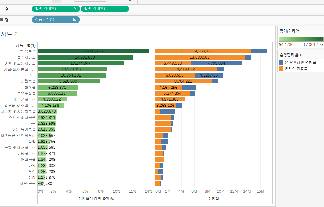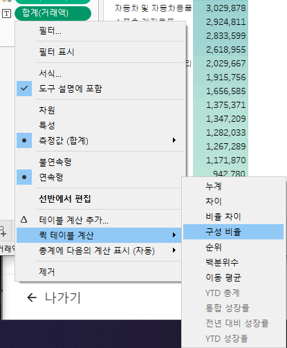 응용 (구성비율 선택 + 거래액 추가 + 색상 변경 + 정렬 변경)
