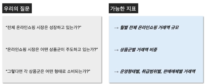 대시보드를 키기 전에, 우리가 받은 질문이 무엇을 요구하는지, 즉 어떤 지표를 필요로 하는지부터 파악해야 한다. (중요)
