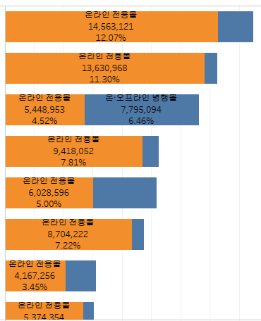 위에서 배운 것만 잘 응용해도, 아래와 같은 그래프를 얻을 수 있음 (tableau 짱이다)