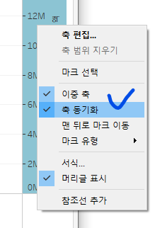 (우측 y축 필요 없으면, 축 동기화 후 마우스 오른쪽 클릭하여 머리글표시 해제)