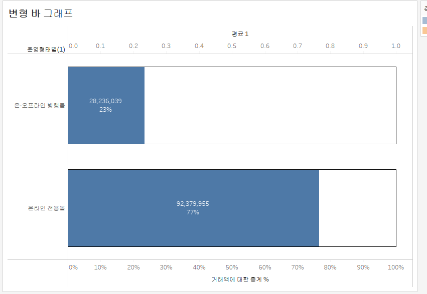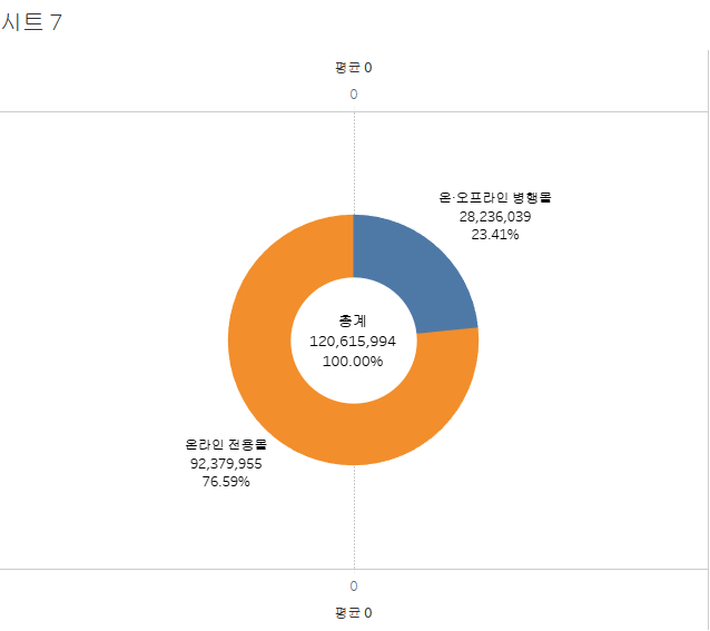 위의 도넛 그래프에서 한 것 처럼, 박스 두 개 만들고 이중축으로 합치면 됨 (이중축 하고 축 동기화 필수!!!)