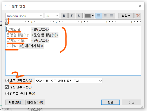 1번에서 도구 설명에 뜨는 데이터명을 수정해줄 수 있음 (각 행의 왼쪽 글자들을 수정해야 함!!)