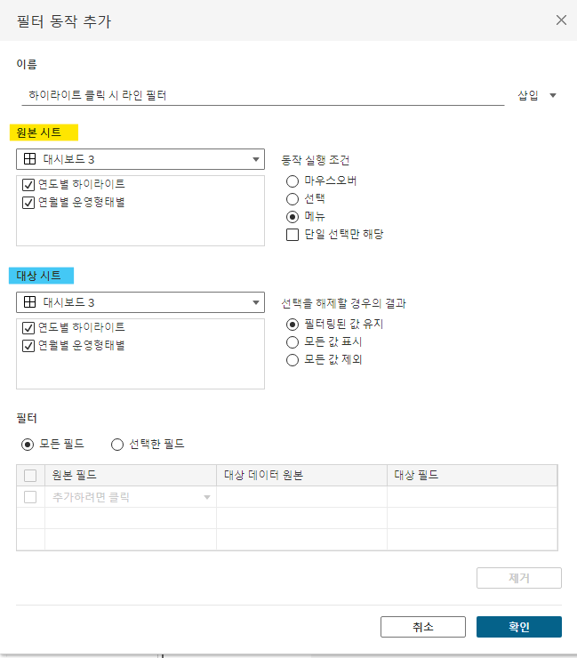 원본 시트와 대상 시트만 지정하고 확인을 눌러도, 대시보드에서 잘 작동하는 것을 확인할 수 있음