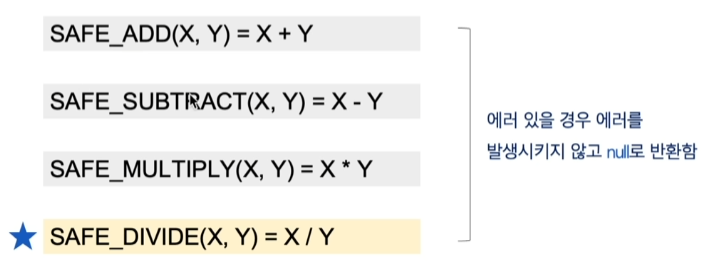 특히, DIVIDE의 경우 0을 나누는 경우를 대비해서 중요함