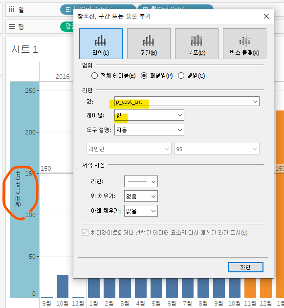 축에 마우스 오른쪽 클릭 > 참조선 추가 > 값과 레이블 설정 해주면 됨