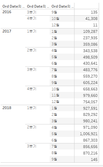 만약 아래와 같은 표에, '연도별 매출 합 컬럼을 추가해주세요~' 라는 요청이 들어올 경우
