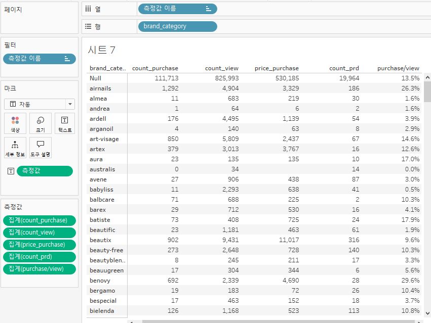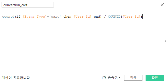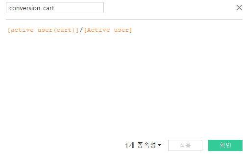 먼저, cart의 전환율과 purchase 전환율에 대한 데이터 필드를 생성해주어야 함