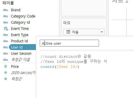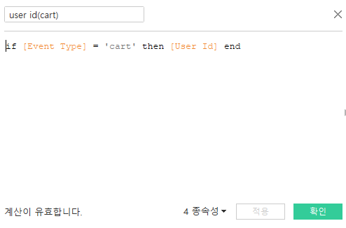 현재 User ID는 중복된 값이 존재하므로, 계산된 필드 생성> 아래와 같이 식 써주기