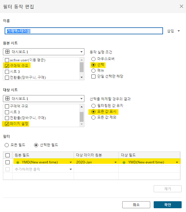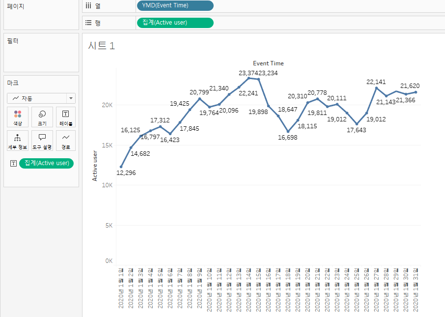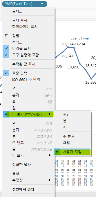 방금 생성한 필드를 기존의 날짜필드 대신 선반에 올려주면 됨