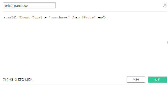 아래와 같이 계산된 필드 작성해서 sum(구매액) 구하기