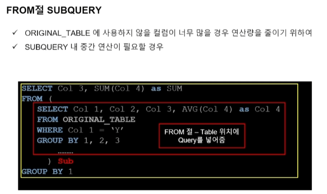 장점 : 여러 쿼리를 JOIN, UNION 시켜야할 경우 유용함!