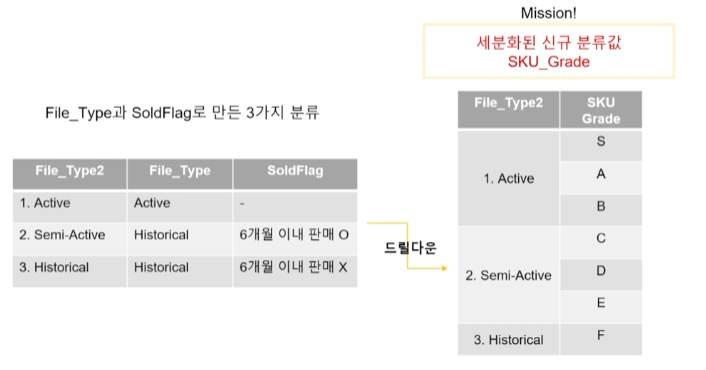-- 3. CASE WHEN 절을 사용해서 SKU_Grade 컬럼 만들기