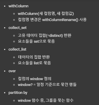 pyspark를 처음 배우지만, 사용되는 함수의 개념은 sql과 많이 비슷해서 강의를 통해 언어를 읽고 이해할 수 있었다. 다만 읽는 것과 쓰는 것은 다르기 때문에, 직접 응용을 통해 체득하는 게 중요할 것 같다.