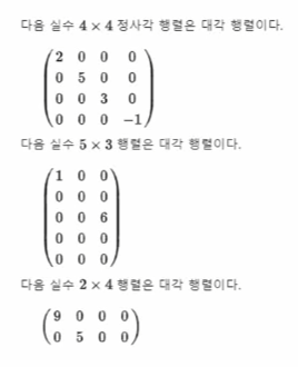 - 대각 성분 외의 값이 모두 0인 행렬