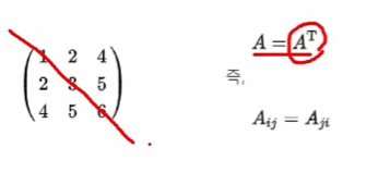 - 대각선을 기준으로 값이 대칭인 행렬