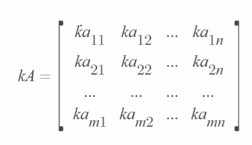 - 행렬 A와 상수 k의 곱셈은 행렬 A의 각 성분에 k를 곱해주면 됨